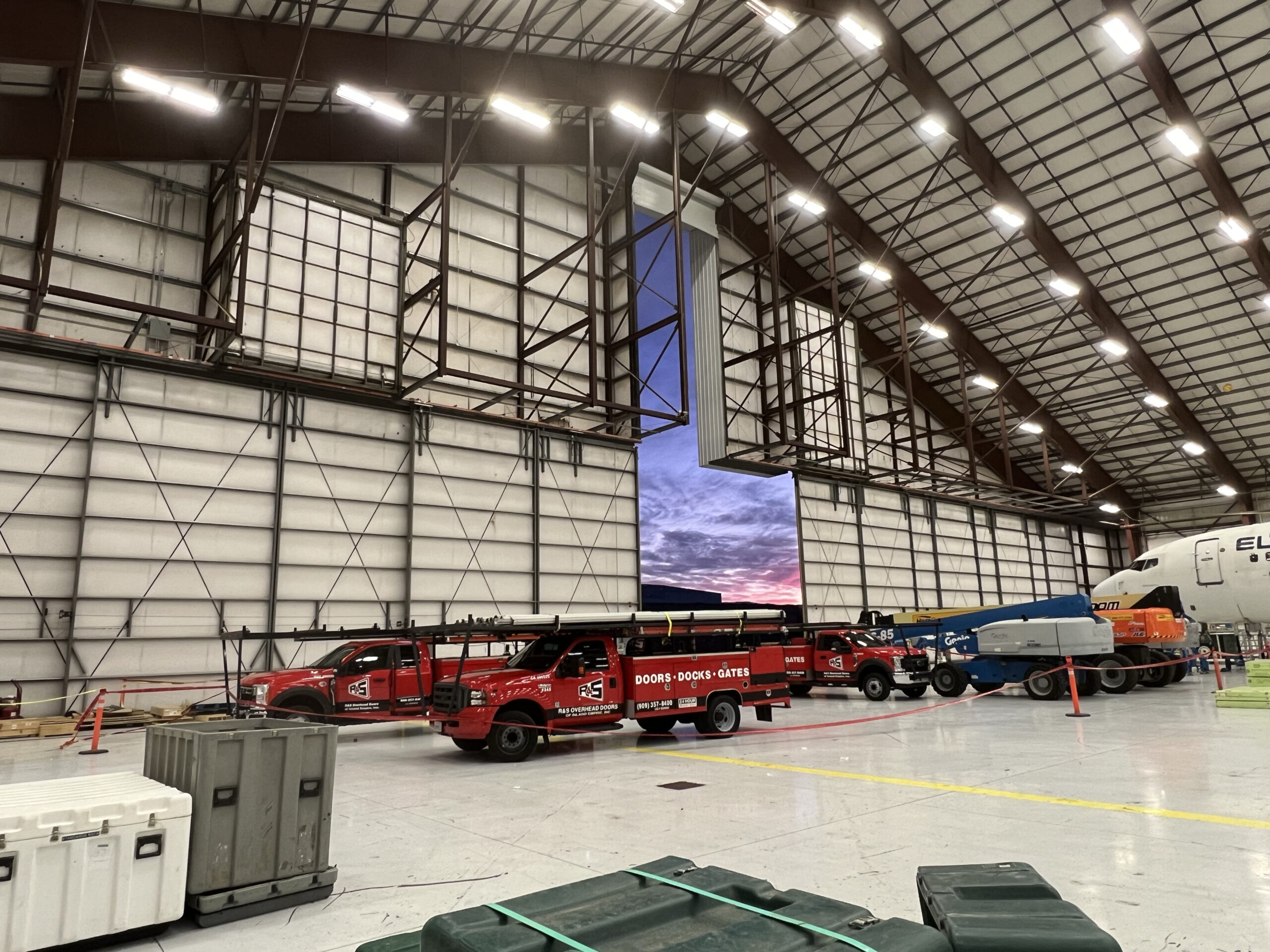Typical Applications: Most commonly used at airport hangers when an overhead rolling type door just isn’t big enough to secure the opening. R&S provides service to both manually operated and automatic Hangar Doors.