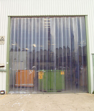 Typical Applications: To improve traffic flow and act as an environmental control barrier between two spaces keeping heating and A/C costs as energy efficient as possible. Clear or tinted PVC strips are slightly overlapped and hung from a header bracket. They are made to be physically, pushed in and out of the opening with ease. Individual strips are easily replaceable.